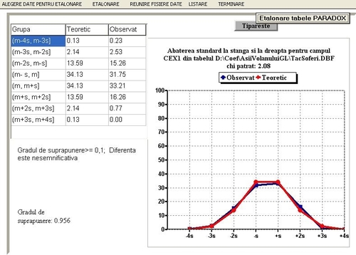 - calculează şi reprezintă grafic abaterea standard la stânga şi la dreapta precum şi gradul de suprapunere faţă de curba normală;